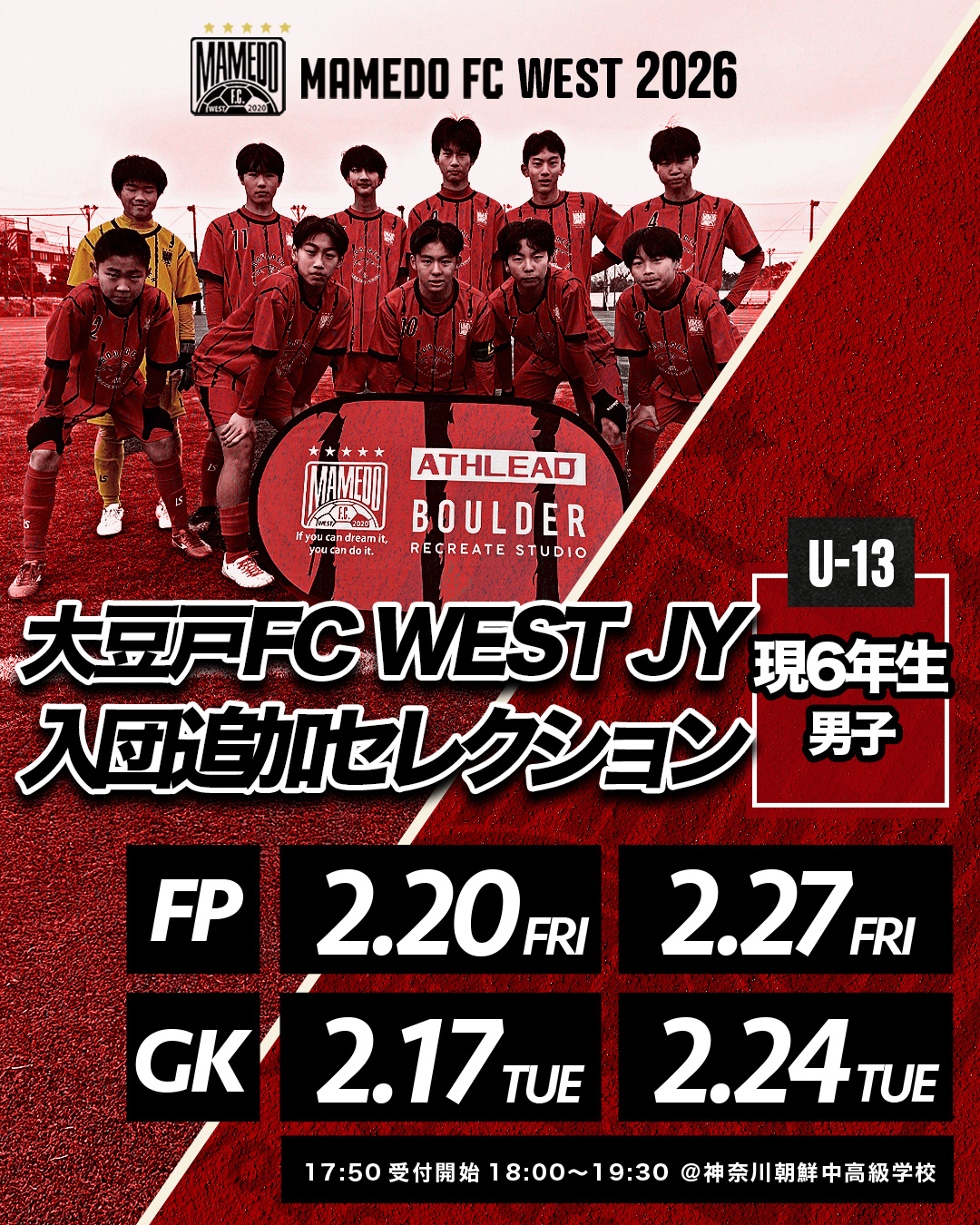 2026年度 大豆戸FC WEST JY 新U-13 入団追加セレクション開催!
