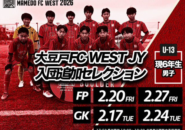 2026年度 大豆戸FC WEST JY 新U-13 入団追加セレクション開催!