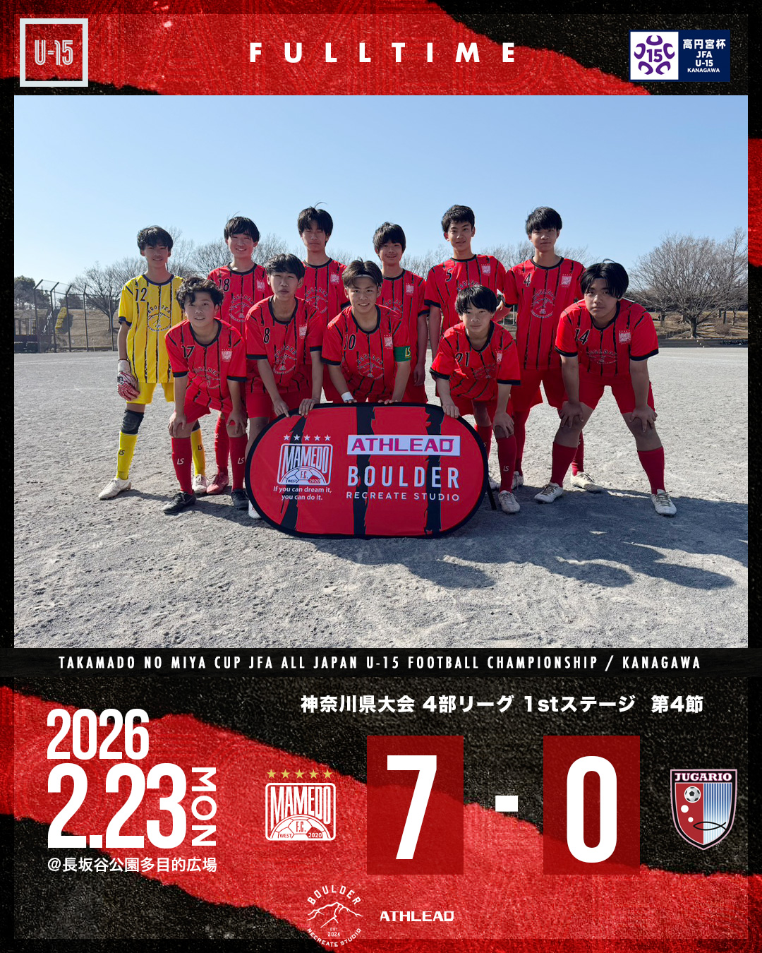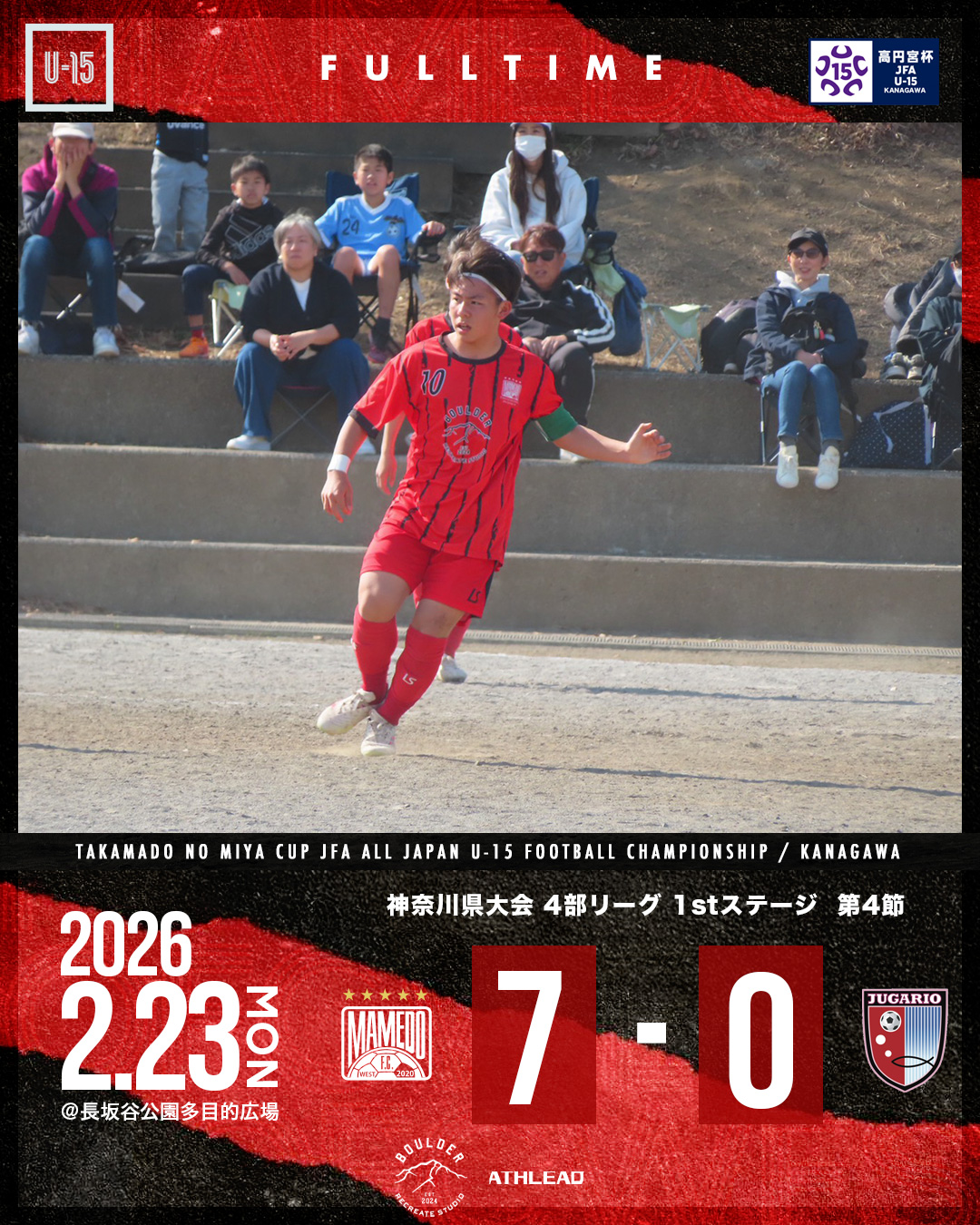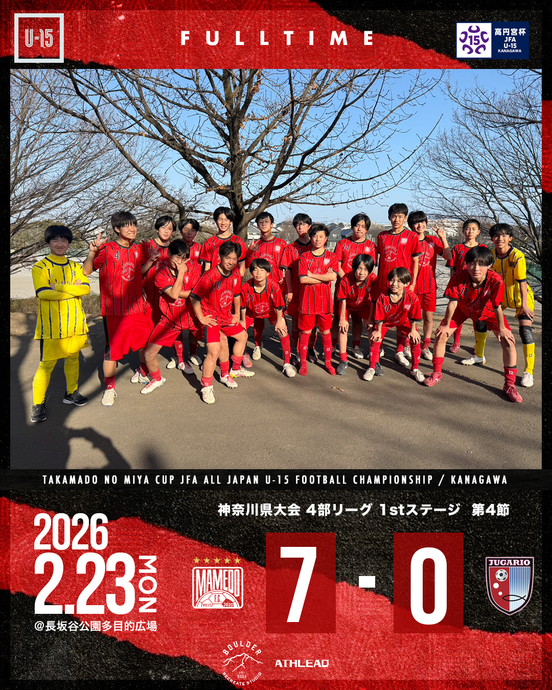 2026年2月23日 お知らせ U-15 神奈川県リーグ2026 4部 1stステージ第4節 高円宮杯JFAU-15サッカーリーグ2026 神奈川県大会 4部 1stステージ第4節会場:長坂谷公園多目的広場 対戦相手:フガーリオ川崎 B スコア:7-0 強風の中でのゲームは決して自分たちの狙った通りにはいきませんでしたが、セットプレーからゴールを重ねて開幕からの連勝をしっかりと伸ばしました。 mamedofcwest 12 Like